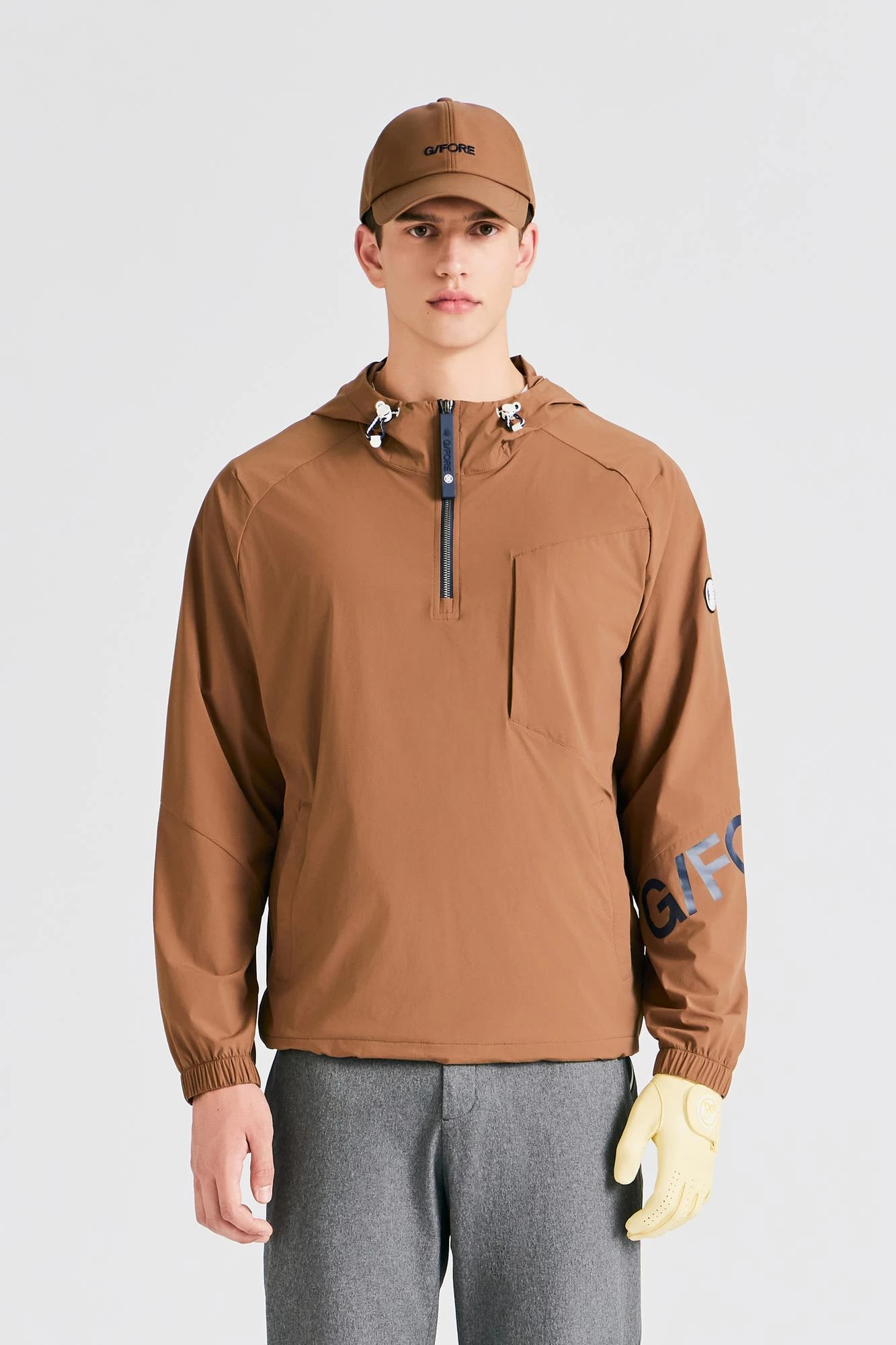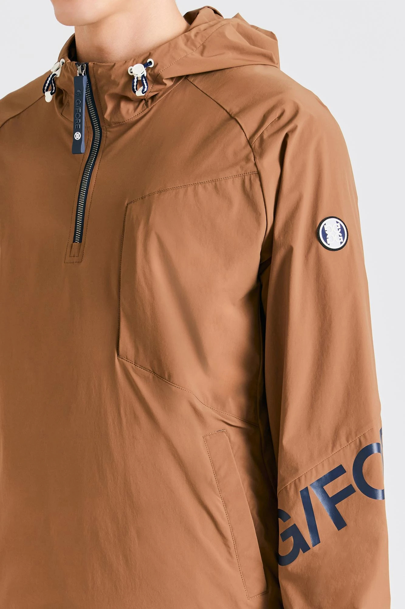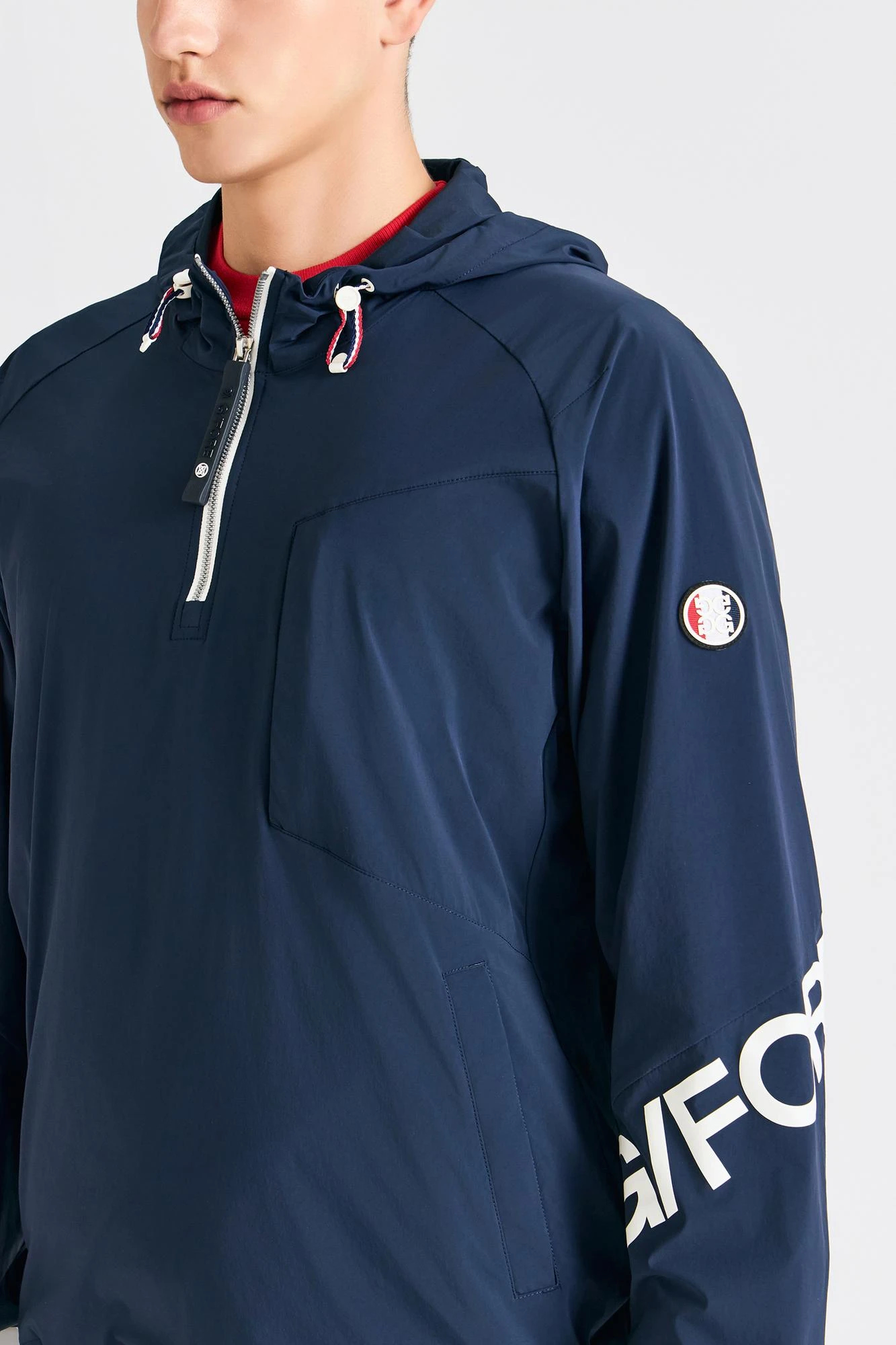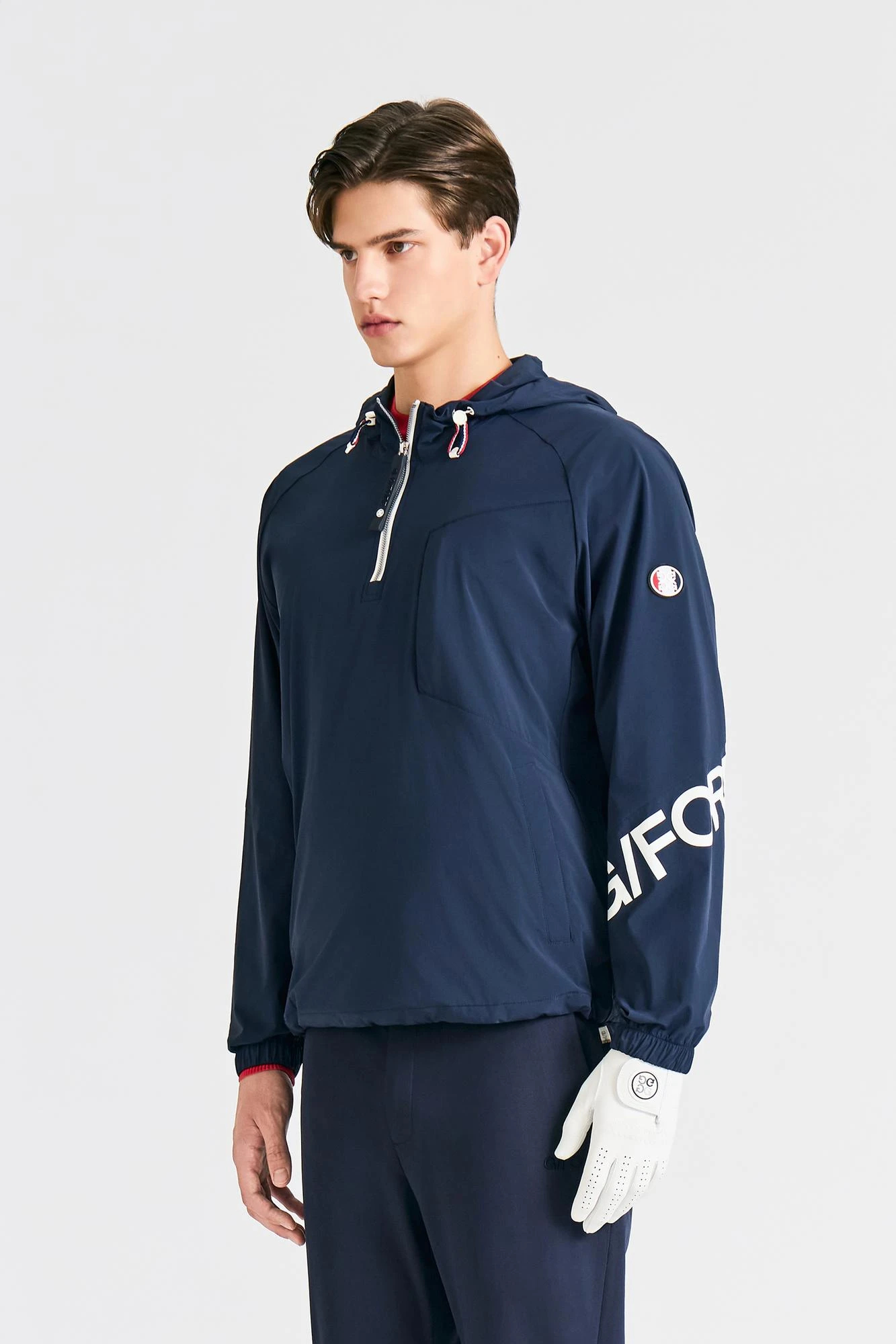 -袖にはトリカラーのCircle G'sロゴとG/FOREロゴプリントが施され、ジーフォアのオリジナリティを表現しています